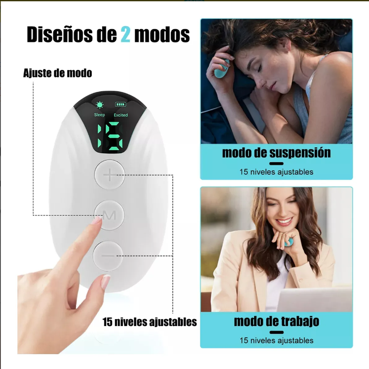 ✅ Sí. El dispositivo utiliza impulsos de baja frecuencia que ayudan a relajar el sistema nervioso, favoreciendo un estado de calma que facilita conciliar el sueño y disminuir la ansiedad. No es un medicamento, por lo que no genera dependencia.